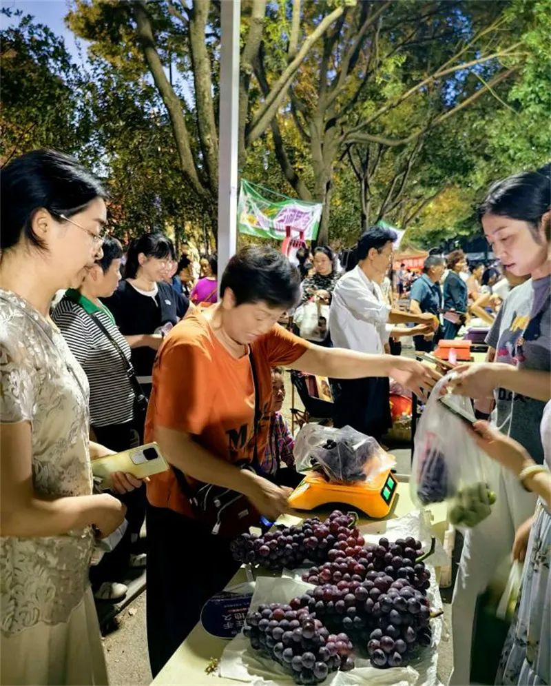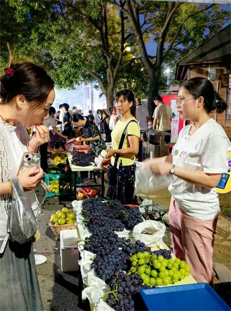 球场边,“寻味漳河·星光夜市”同步开启!摊位前葡萄晶莹欲滴、黄桃香甜扑鼻,人群熙攘间夹杂着青龙茶的香味......众多漳河原生态农产品令人目不暇接。