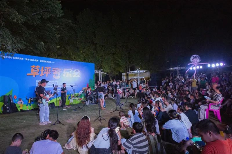 草坪上,城南城北乐队的歌声随晚风流淌,音符跃动,旋律如同繁星闪烁,为激战正酣的篮球赛镀上一层梦幻的光晕。人群随着节奏摇摆,有人席地而坐,有人踮起脚尖,试图捕捉每一个音符背后的故事。