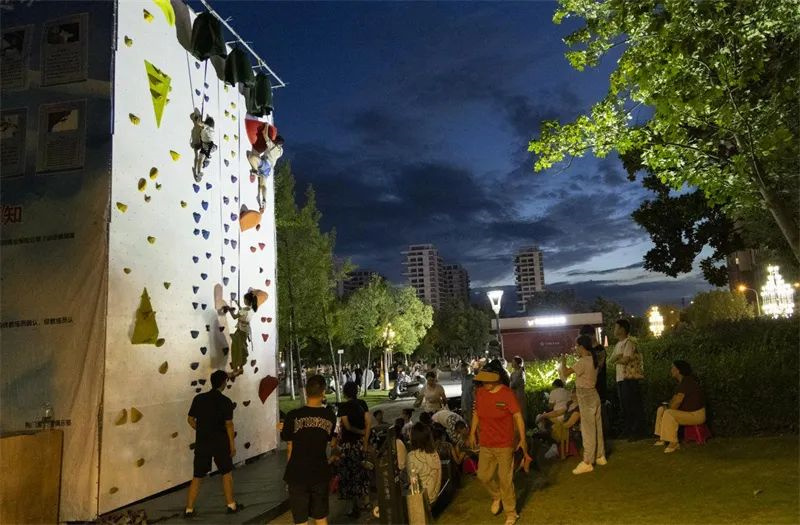 市集熙攘,市民们穿梭在各摊位间,各色美食香气交织,令人垂涎欲滴;健身神器的摊位前围满了运动爱好者,成为他们的欢乐天地;一旁的青年营地更是烤肉飘香,充满欢声笑语。大家一边享受美食,一边观看比赛,交织成一幅活色生香、意趣横生的市集生活图景。