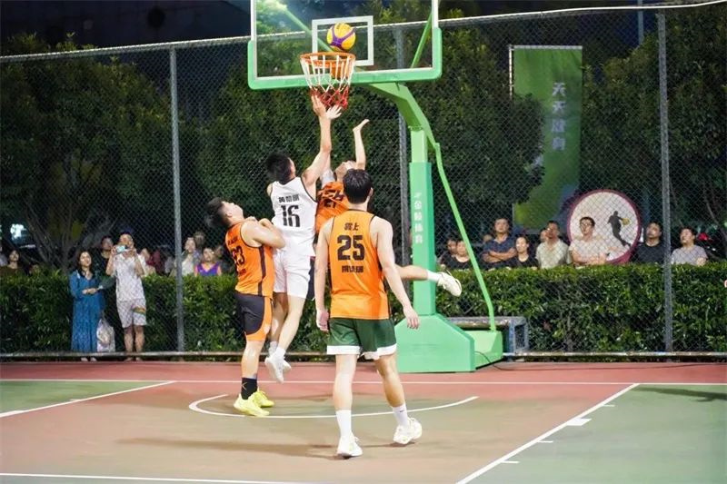 每一次奋不顾身的拼抢防守、每一次精彩的攻防转换,都将现场的气氛不断推向新的高潮。篮球撞击地面的节奏、DJ动感的音浪、裁判响亮的哨声、观众此起彼伏的欢呼声交织成一曲夏夜战歌。