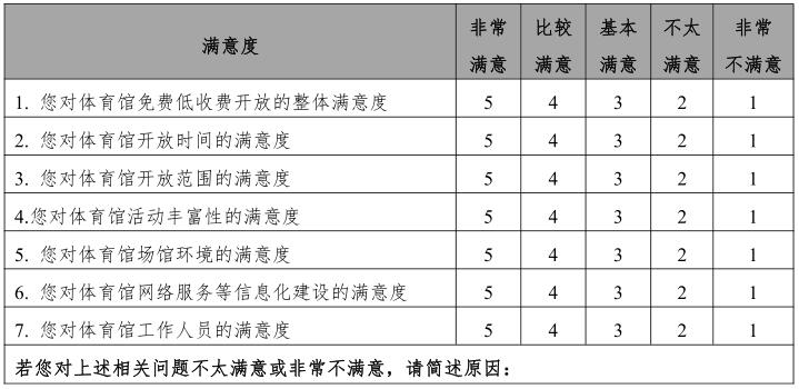 大型体育馆免费低收费开放服务对象社会公众满意度调查问卷