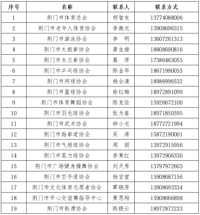 体育文化中心服务的体育组织相关信息